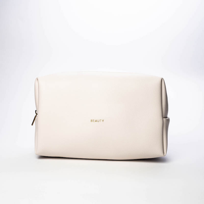 ISO-BSCI 認証のホワイトレザー製化粧バッグで優雅さと信頼性をご体験ください。個人使用にもカスタマイズ可能なブランド拡張にも最適です。
